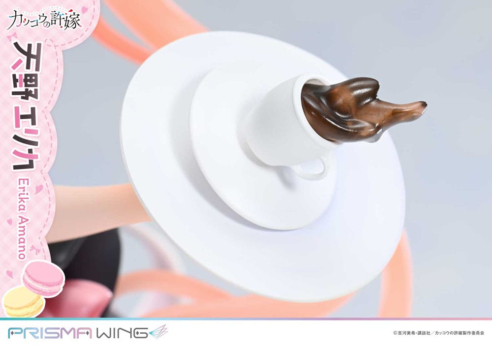 At Erika’s feet rests a specially crafted base adorned with delicate sweets. Lightly baked macarons and soft, fluffy cream create a delightful scene-perfectly paired with the coffee she carries.