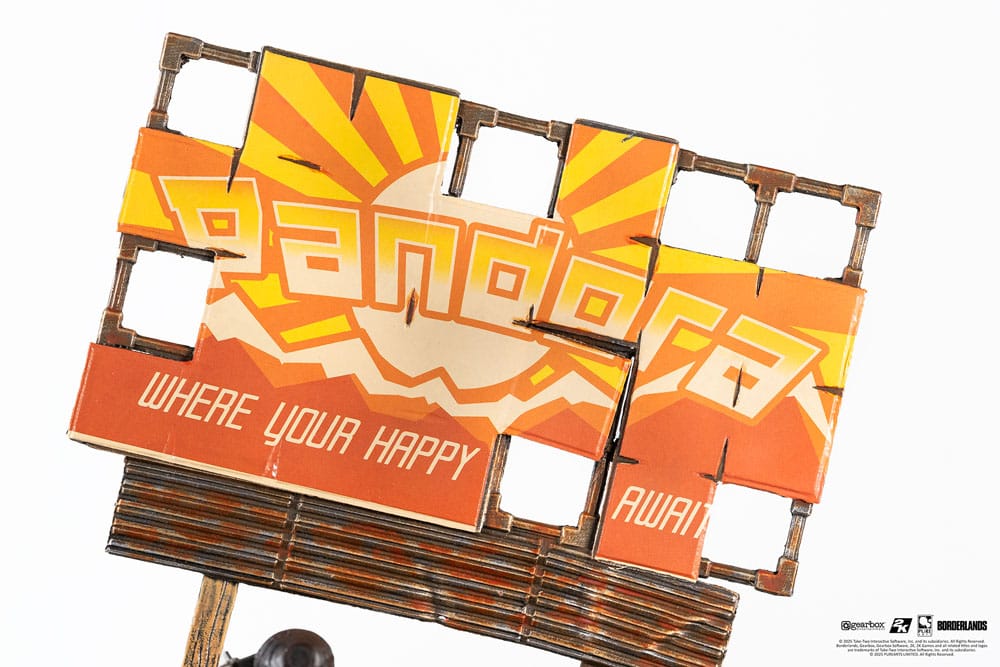 Welcome to Pandora, where your happy ending awaits! Bring the mayhem and chaos of Borderlands to life with this 1/6 Scale Diorama of the iconic Psycho Bandit playfully tormenting hapless robot Claptrap in front of a “scenic” Pandoran vista!