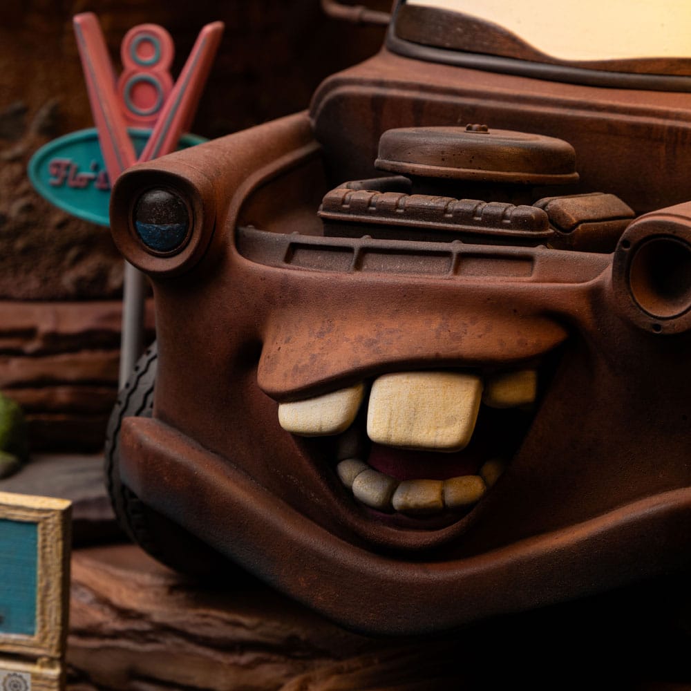 Who are Lightning McQueen & Tow Mater? The main character and central protagonist of Cars, considered one of Pixar’s most popular and successful franchises, began in 2006. The series is set in a world entirely populated by anthropomorphic cars and other vehicles. Lightning McQueen is a professional race car who quickly rose to prominence in his local scene before debuting in the Piston Cup. He had a long and prosperous career, winning several championships before becoming the trainer and head of Cruz Ramirez on the Dinoco racing team. McQueen is typically portrayed as kind and passionate, having found an unlikely home in Radiator Springs, Arizona, where he lives with his best friend Tow Mater, his girlfriend Sally, and many other neighbors. Originally arrogant and self-centered, driven by ambitions to become a professional Piston Cup racer, he gets lost when his transporter takes him to Los Angeles and seeks help on the interstate road when pursued by the sheriff of the small town of Radiator Springs. After causing some chaos in an escape attempt, McQueen is sentenced to community service in the town. He ends up making friends with the locals, especially the distracted Tow Mater, a 1955 Chevrolet tow truck. The film spawned two sequels, Cars 2 (2011) and Cars 3 (2017), as well as two spin-offs, games, comic books, collectibles, and more. Exploring the Lightning McQueen & Tow Mater Deluxe statue: On a platform of pure rock, shaped by the hot winds of the Sonoran Desert over time, the fearless and daring scarlet racer smiles at his charismatic yet sometimes clumsy best friend, a friendly and rustic tow truck that time and rust have transformed into a patchwork of brown and orange, with parts of its original blue still visible. Arriving in first place on the podium, Iron Studios proudly presents the statue “Lightning McQueen & Tow Mater – Cars – Deluxe Art Scale 1/10”, featuring the main protagonists of the classic Disney Pixar Animation Studios film, set on a diorama base full of references like miniature buildings, signs, and the beautiful vegetation of Radiator Springs in the front, along with a pair of miniatures in the back depicting McQueen and his beloved Sally Carrera reminiscing about their races along nearby routes, passing through natural rock tunnels. Figure details: Expanding Iron Studios’ collection of the most memorable characters from animated feature films that became successful franchises, Lightning McQueen & Tow Mater are classics of animation meticulously replicated by Iron Studios, based on the original references capturing all the details of the Piston Cup champion and his best friend. Special features: The statue Lightning McQueen & Tow Mater – Cars – Deluxe Art Scale 1/10 from Iron Studios will be produced in limited edition. The diorama base presents rich details inspired by the original references. Material and finishing of the piece: Just like all the other statues manufactured by Iron Studios, the statue Lightning McQueen & Tow Mater – Cars – Deluxe Art Scale 1/10 is made with high-quality materials such as Polystone and may contain parts in resin, PVC, metal, and fabric. For the finishing, the hand-painted statue ensures a unique and exclusive artistic touch to satisfy any collector. Revealed in the Halloween-themed Inside Iron Studios Day show and now available for Pre-order, Disney Pixar’s most beloved race car comes in two versions, deluxe and regular, much to the delight of fans and collectors, expanding Iron Studios’ collection of the most memorable characters from animated films that have become successful franchises.