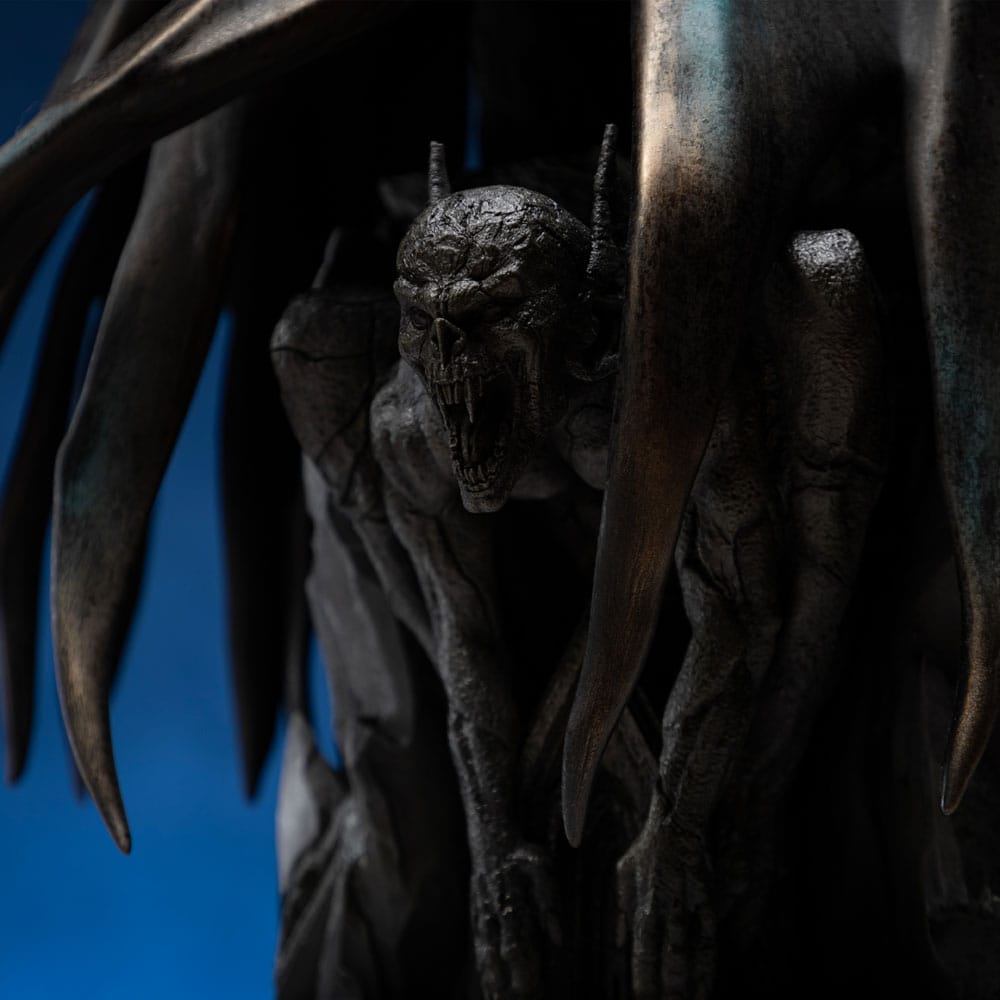 This detailed statue of “Batman” is made of high-quality polystone in 1/4 scale and comes with an elaborate base and interchangeable parts in a printed box.