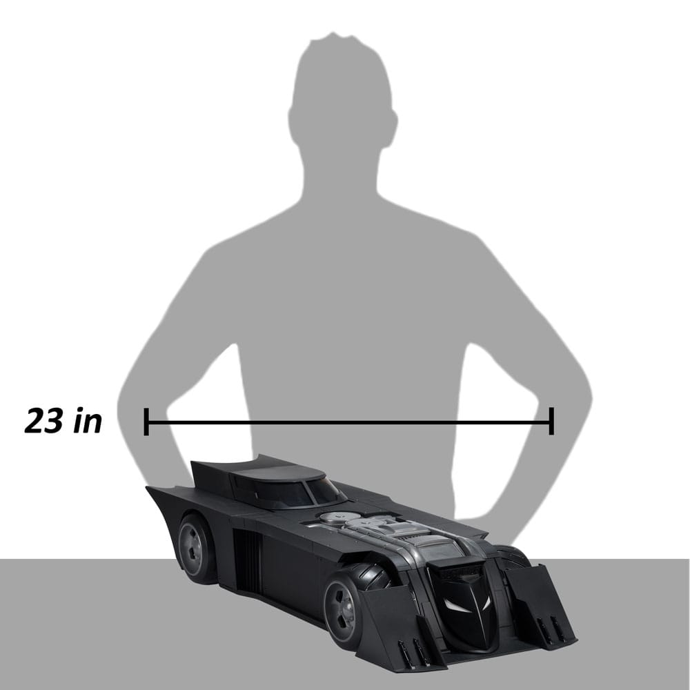 – Batmobile is 23″ LONG and the canopy opens for cockpit access with the press of a button