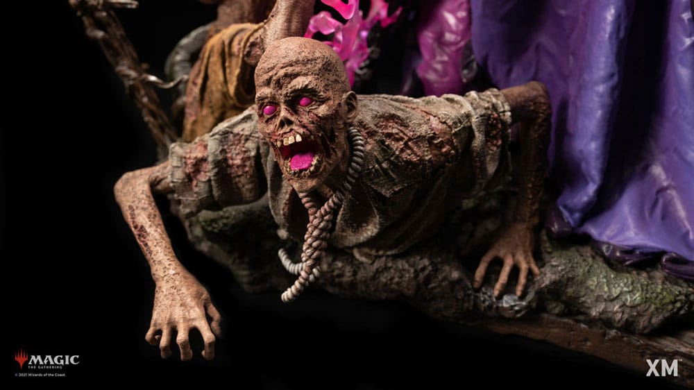 A PREVIEWS Exclusive! Bringing to life the elegance and power that Liliana Vess exudes, the statue depicts the powerful master necromancer in her element. Powers unleashed, she reanimates the dead as they crawled and clamor at her feet. Intricate and dynamic details: Textures and creases on her luxurious dress and coat, the beautiful lines on her skin, a graveyard inspired themed base. Included are 2 Head-sculpts: 1 of Liliana in chain veil, 1 unmasked, in her element, powers activated Crafted in cold cast porcelain. Each painstakingly handcrafted statue is individually hand-painted with the highest possible quality finish. Limited edition run: 399 pieces only.
