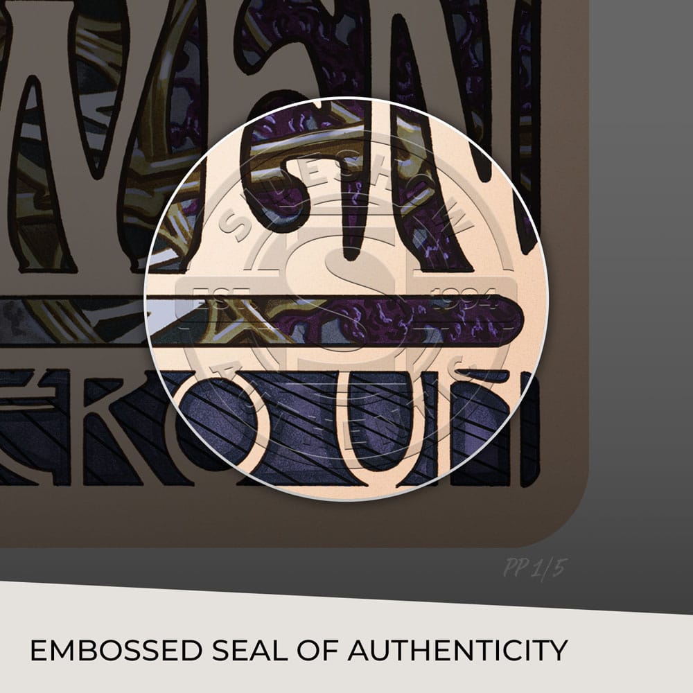 Originally created as a variant cover for Spider-Gwen #1 (2015), written by Jason Latour for Marvel Comics, this Spider-Gwen art is now available to fans as an unframed giclée print or in a custom framed presentation. Each Spider-Gwen: Périodique Numéro Un Fine Art Print features an authorized, automated artist signature and an embossed Sideshow Seal of Authenticity as part of the limited edition of 150 pieces.