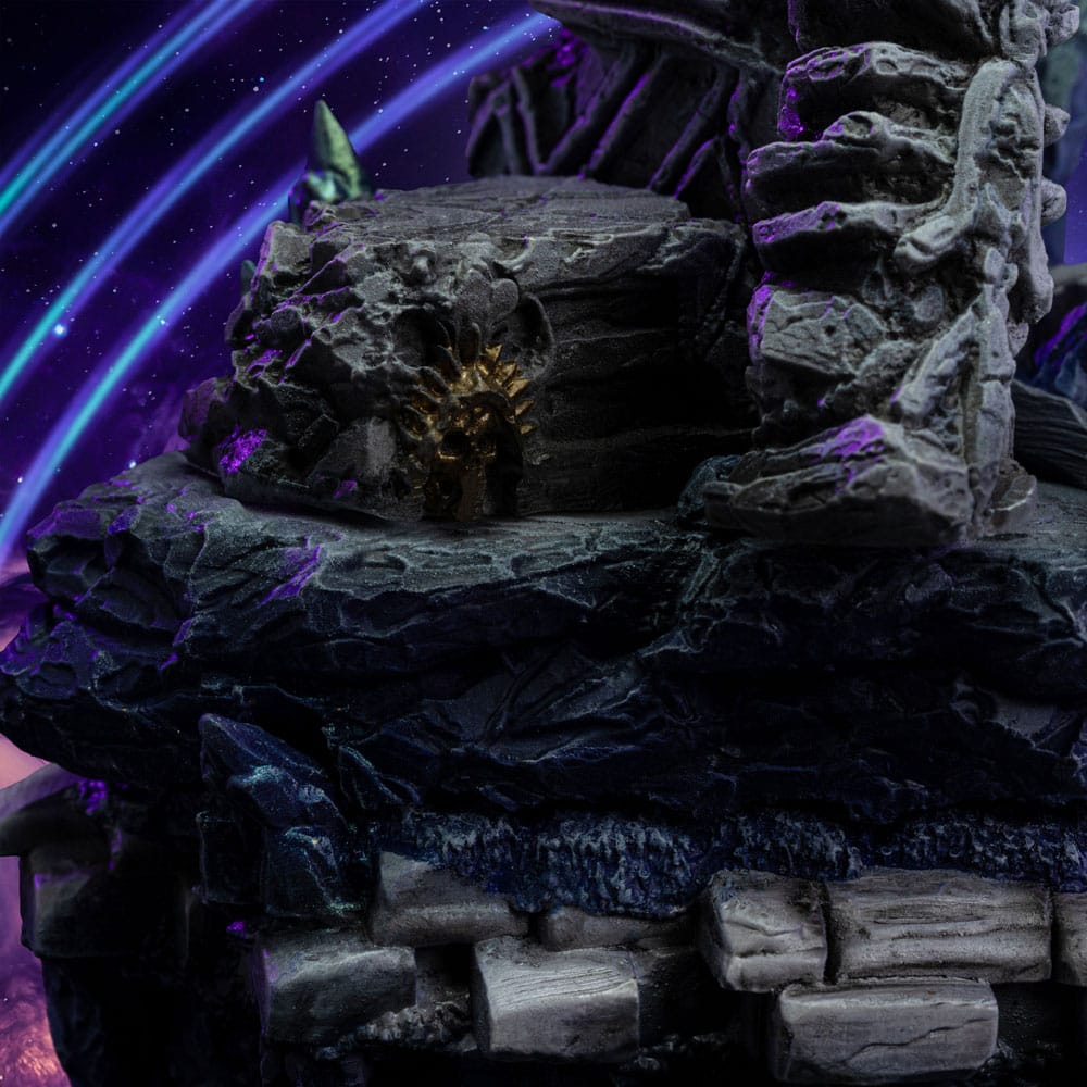In an emblematic battlefield beyond time and space, amidst the ruins of a temple built to honor Lady Death, the space hero known as the Human Rocket hovers above a rubble of rocks with jagged stones and sculpted skulls. Wearing his altered and enhanced dark, blue, and gold Centurion Prime uniform, with clenched fists energized by the strength of a unique sentient mind artificially created from a living supercomputer, he joins a pantheon of great heroes to confront the titan Thanos and his Infinity Gauntlet. Iron Studios presents the “Nova – Infinity Gauntlet Diorama – Deluxe Art Scale 1/10” statue, featuring the champion of Xandar and Earth, produced for the first time by Iron Studios, presenting the superhero member of the New Warriors, the Defenders, the Champions of Xandar, the Secret Avengers, the Nova Corps, the Guardians of the Galaxy…The Man called Nova!