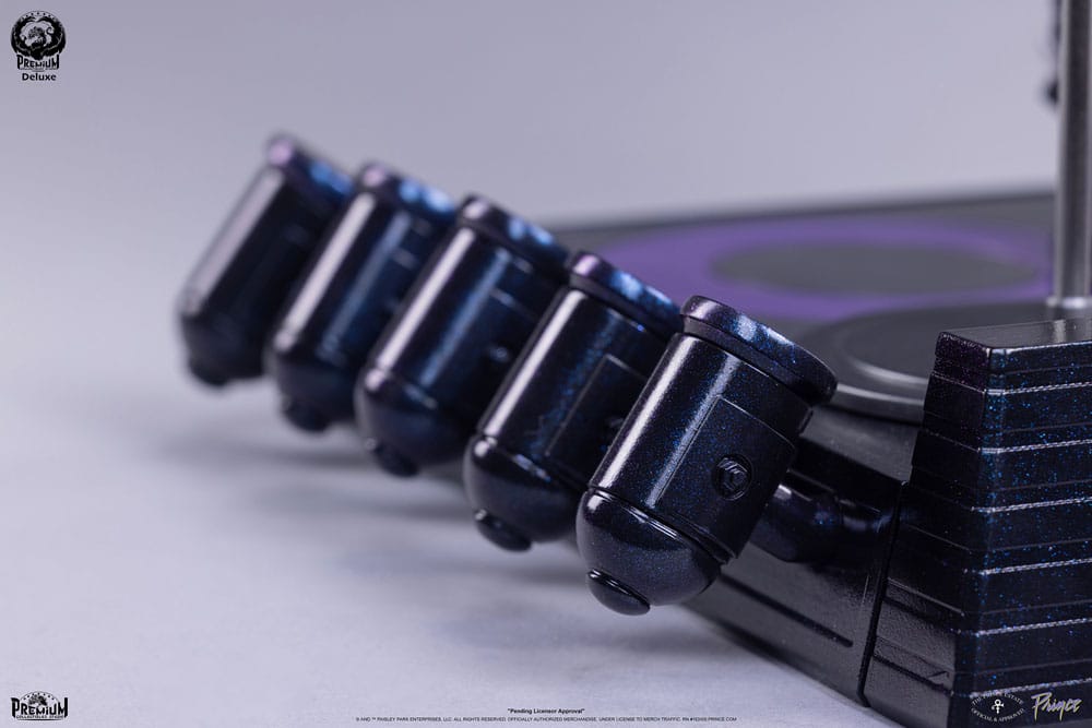 The Prince 1:3 Statue – PCS Deluxe immortalizes the pop icon as he appeared in the classic film “Purple Rain”. The award winning pop star is depicted at center stage, his right hand cupped over his ear, egging on the crowd. The base is lined with LED light-up floor lights and is adorned with his ubiquitous, “Love Symbol #2” depicted in his trademark purple.